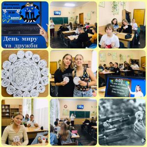У практичній частині виховного заходу восьмикласники взяли участь в інтелектуальній вікторині «День Миру та дружби» і виготовили власноруч «Квітку надії» на Мир в Україні та всьому світі.