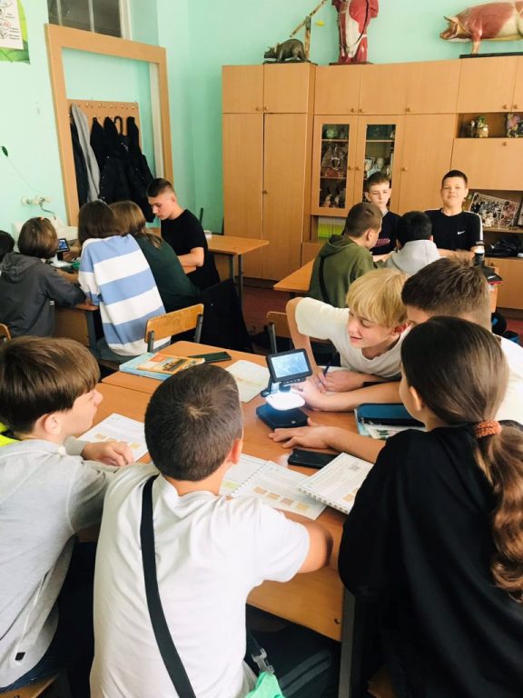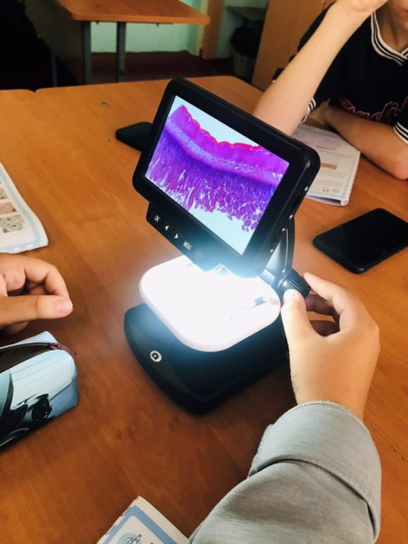 Так, восьмикласники вивчали під мікроскопами готові препаратів різних типів клітин та тканин (епітеліальної, сполучної, м’язової, нервової). Це, в свою чергу, дозволило поглибити знання про будову та функції тканин людини, їхні особливості та різноманіття.